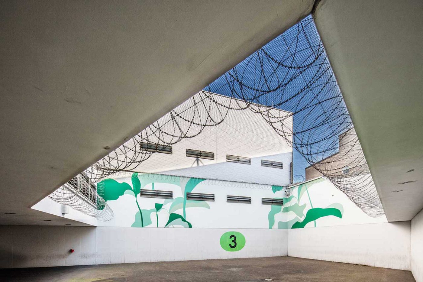 Everyday life in prison is gray. A little color can't hurt. Basel sets colorful accents in the walking yards.
