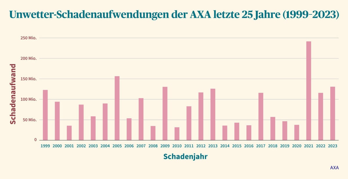 "We have noticed an increase over the last three years. However, this is too short a period to speak of a trend. Storm damage is very volatile," says Stefan Müller, Head of Property Damage Insurance at AXA. "However, our experience shows that storms now occur at shorter notice than in the past and their intensity has increased significantly: extremely strong gusts of wind, more heavy rain, more frequent large hailstones - and all of this is sometimes localized and small-scale." This has created new dangers. For example, heavy rain in densely populated areas can turn streets into dangerous rivers and literally flood underground car parks. This is only partially reflected in the statistics, as the federal government, cantons and municipalities have also invested more in protective measures. Flood relief tunnels, retention basins, raised dams and the national flood hazard map are paying off.
