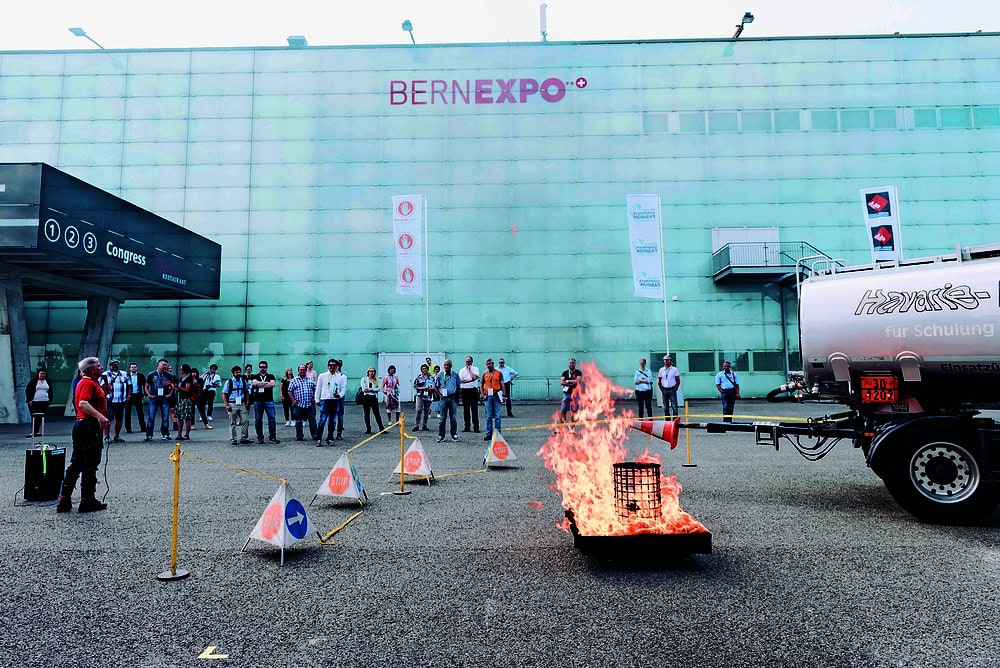 Sur le salon, les participants peuvent en outre effectuer un parcours de sécurité. Cinq exposants de différents domaines montreront par exemple comment mettre correctement un harnais de sécurité ou quels sont les dangers liés aux substances chimiques.